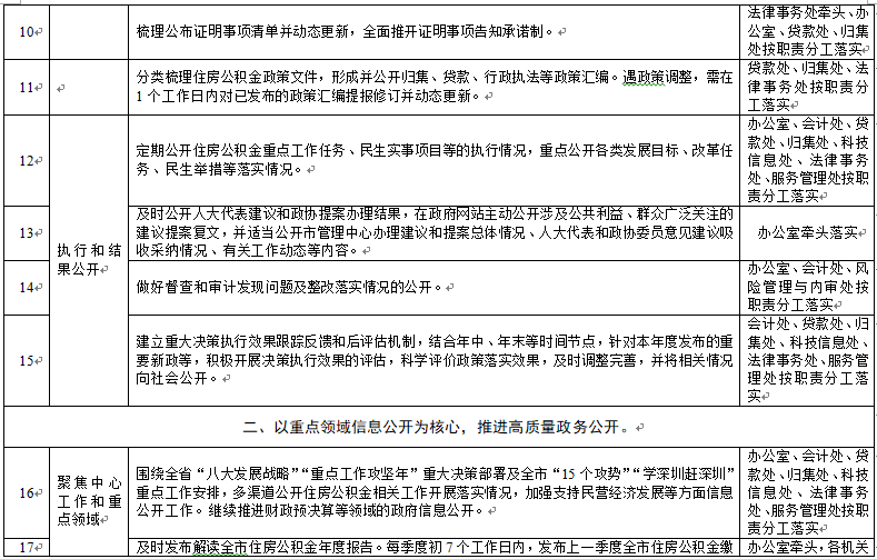 市住房公積金管理中心政務(wù)公開重點(diǎn)工作任務(wù)分解落實(shí)表
