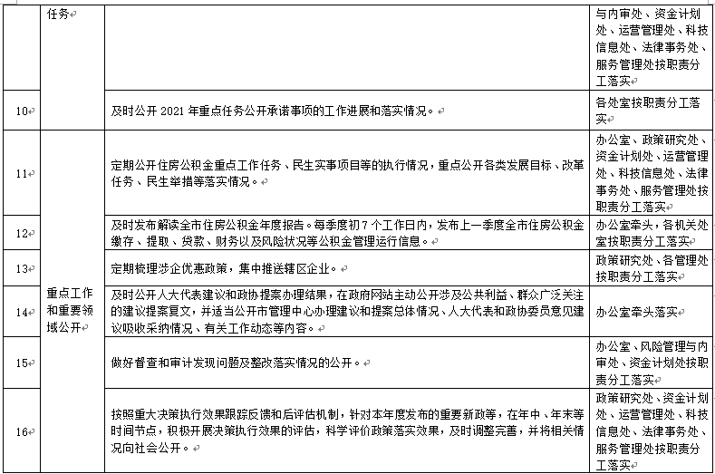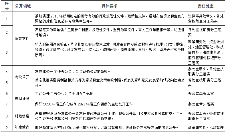 青島市住房公積金管理中心政務(wù)公開重點(diǎn)任務(wù)分解落實(shí)表