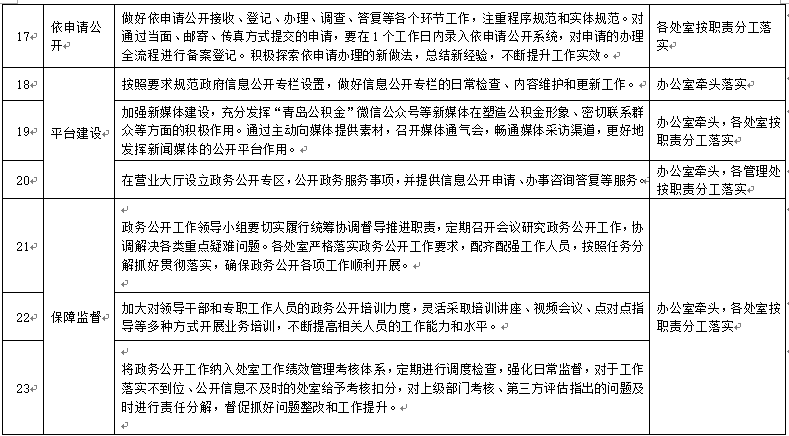 附件:青島市住房公積金管理中心政務(wù)公開重點(diǎn)任務(wù)分解落實(shí)表