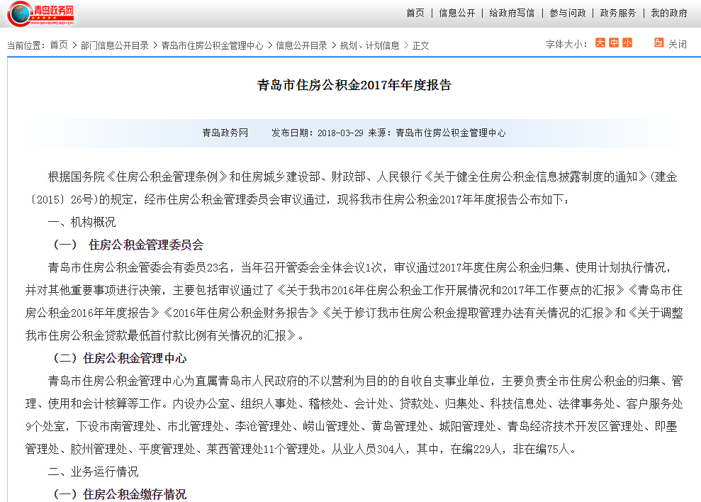 按照上級有關(guān)文件要求,及時編制完成《青島市住房公積金2017年年度報告》及相關(guān)解讀文件,并在青島市政務(wù)網(wǎng)、青島市住房公積金官方網(wǎng)站和“青島公積金”微信公眾號進行發(fā)布。明確住房公積金管理運行信息發(fā)布要求,于每季度初通過青島政務(wù)網(wǎng)、青島市住房公積金官方網(wǎng)站發(fā)布上一季度全市住房公積金繳存、提取、貸款、財務(wù)以及風險狀況等公積金管理運行信息。