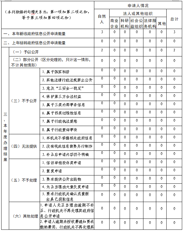 三、收到和處理政府信息公開申請情況