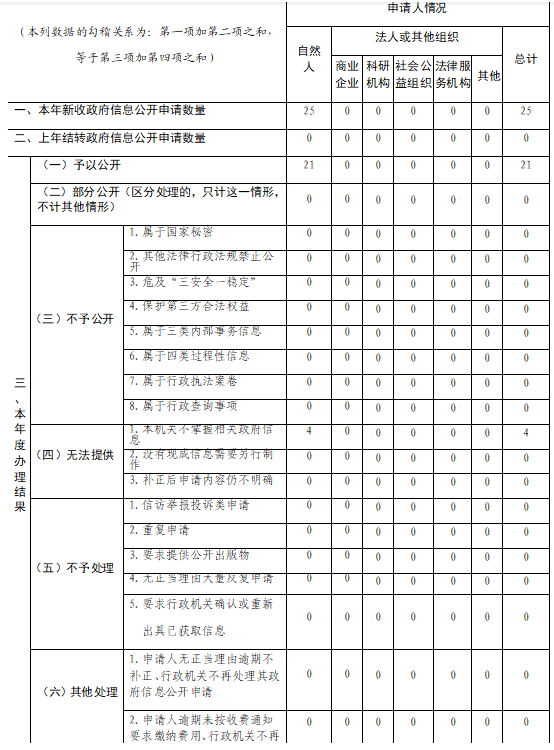 (三)行政機(jī)關(guān)收到和處理政府信息公開申請情況。