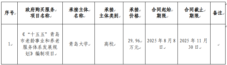 青島市民政局2025年度政府購買服務(wù)項(xiàng)目承接主體(《“十五五”青島市老齡事業(yè)和養(yǎng)老服務(wù)體系發(fā)展規(guī)劃》編制項(xiàng)目)