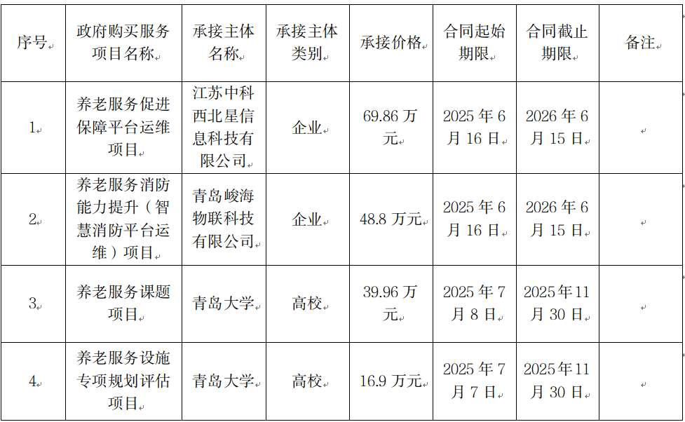 青島市民政局2025年度政府購買服務(wù)項目承接主體(養(yǎng)老服務(wù)促進保障平臺運維項目等)