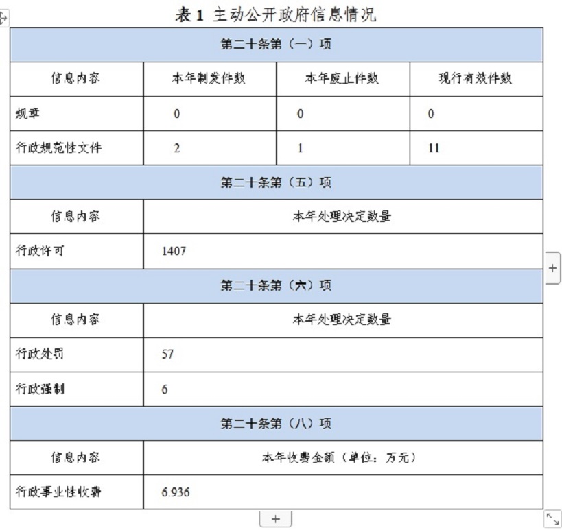 本年制發(fā)行政規(guī)范性文件2件,廢止1件,現(xiàn)行有效11件。本年處理決定行政許可1407件、行政處罰57件、行政強(qiáng)制6件。本年行政事業(yè)性收費(fèi)金額6.936萬(wàn)元。