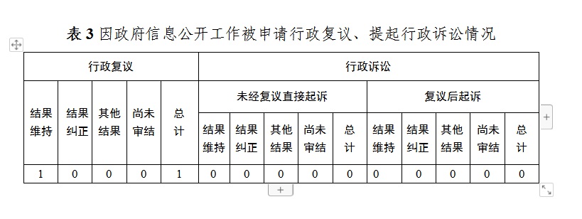 因政府信息公開工作被申請(qǐng)行政復(fù)議1件,結(jié)果維持1件。無(wú)政府信息公開行政訴訟情況。