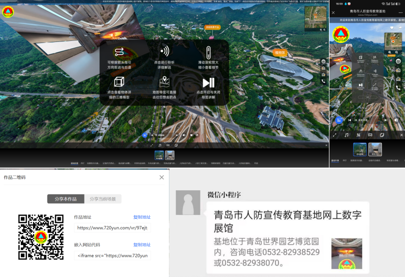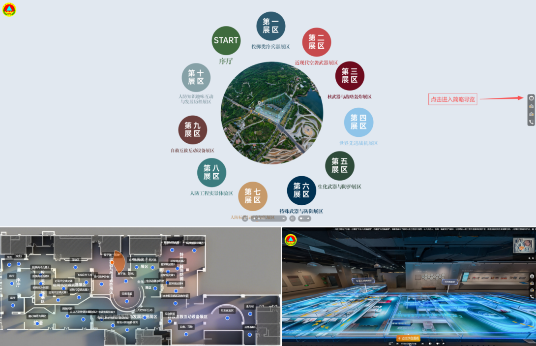 (青島市人防宣傳教育基地網(wǎng)上數(shù)字展館主場景,內(nèi)置交互式沙盤地圖,支持一鍵跳轉(zhuǎn)與實(shí)時(shí)定位,觀眾可獲得全景視覺體驗(yàn))