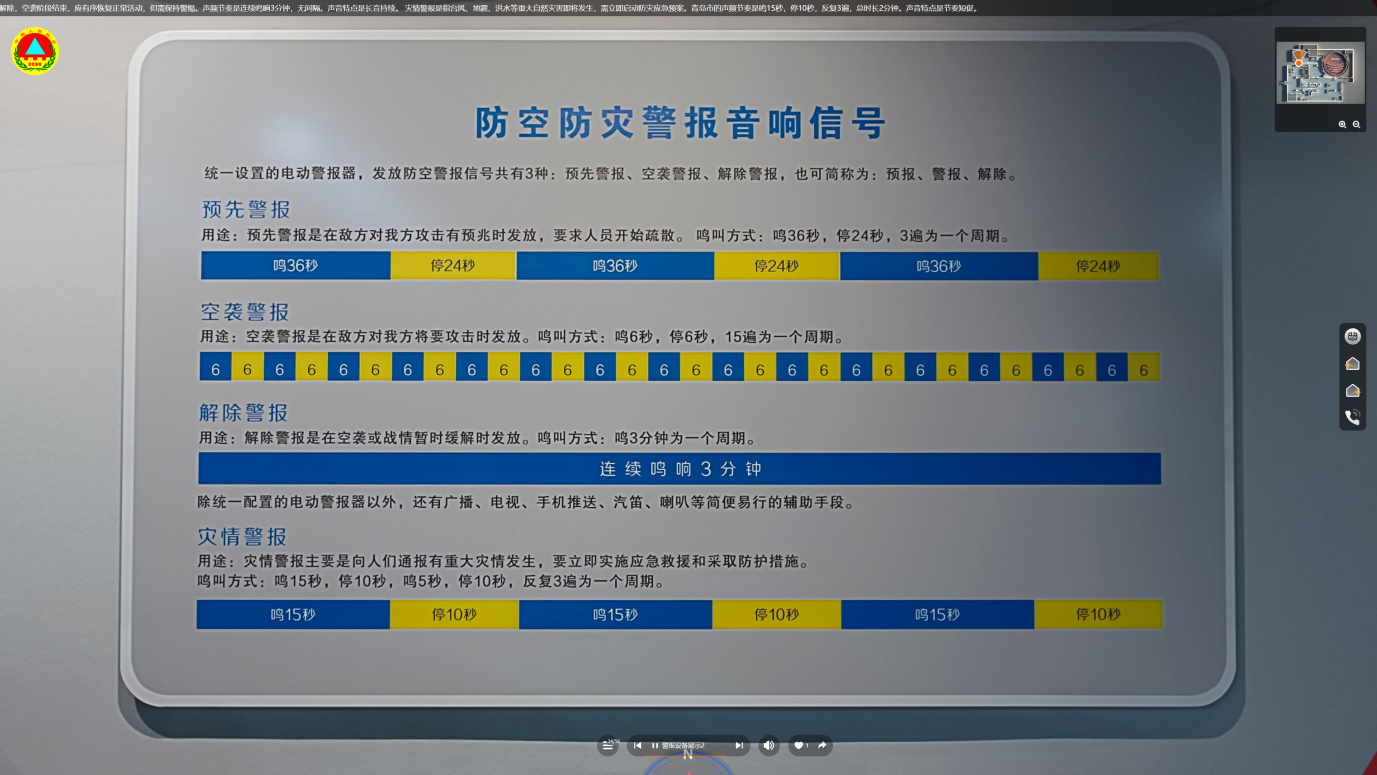 (最受歡迎的“人防警報(bào)試鳴”仿真模塊,市民可點(diǎn)擊觸發(fā)不同警報(bào)聲,學(xué)習(xí)對應(yīng)的應(yīng)急行動(dòng)指令)
