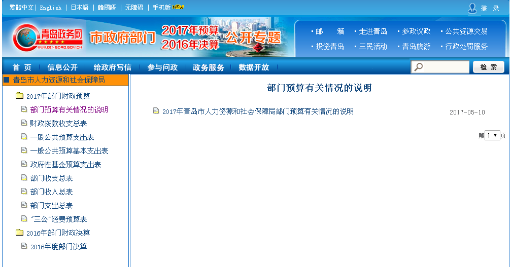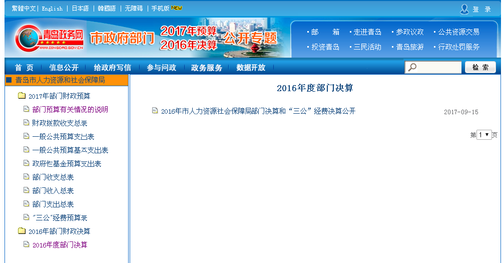 (一)推進(jìn)財(cái)政資金信息公開。我局重點(diǎn)公開了《2016年青島市人力資源和社會(huì)保障局“三公”經(jīng)費(fèi)決算》及《2017年度青島市人力資源和社會(huì)保障局部門預(yù)算》,內(nèi)容涉及部門收支決算,“三公”經(jīng)費(fèi)財(cái)政撥款支出決算等內(nèi)容。