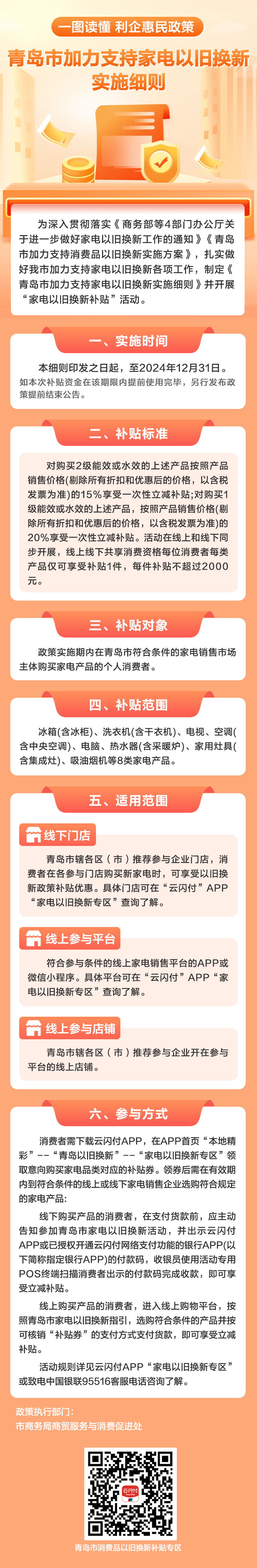 一圖讀懂|《青島市加力支持家電以舊換新實施細則》