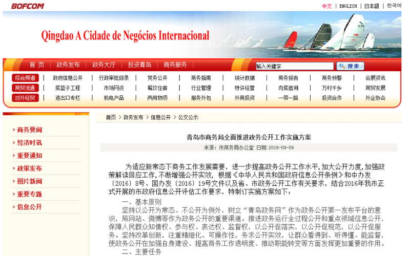 1.完善政務(wù)網(wǎng)站建設(shè)。我局積極創(chuàng)新信息公開形式,遵循“信息平臺、服務(wù)平臺”政務(wù)網(wǎng)站建設(shè)的構(gòu)建理念和宗旨,把政務(wù)網(wǎng)站建設(shè)與構(gòu)建服務(wù)型機(jī)關(guān)、提高行政效能緊密結(jié)合起來,做到“服務(wù)機(jī)關(guān)、服務(wù)企業(yè)、服務(wù)民生”,使其成為充分展示青島市商務(wù)工作形象的窗口和政府與企業(yè)聯(lián)系溝通的橋梁。