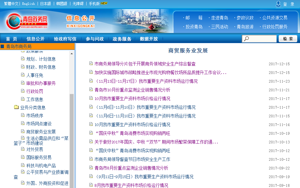 1.完善政務(wù)網(wǎng)站建設(shè)。我局積極創(chuàng)新信息公開(kāi)形式,遵循“信息平臺(tái)、服務(wù)平臺(tái)”政務(wù)網(wǎng)站建設(shè)的構(gòu)建理念和宗旨,把政務(wù)網(wǎng)站建設(shè)與構(gòu)建服務(wù)型機(jī)關(guān)、提高行政效能緊密結(jié)合起來(lái),做到“服務(wù)機(jī)關(guān)、服務(wù)企業(yè)、服務(wù)民生”,使其成為充分展示青島市商務(wù)工作形象的窗口和政府與企業(yè)聯(lián)系溝通的橋梁。