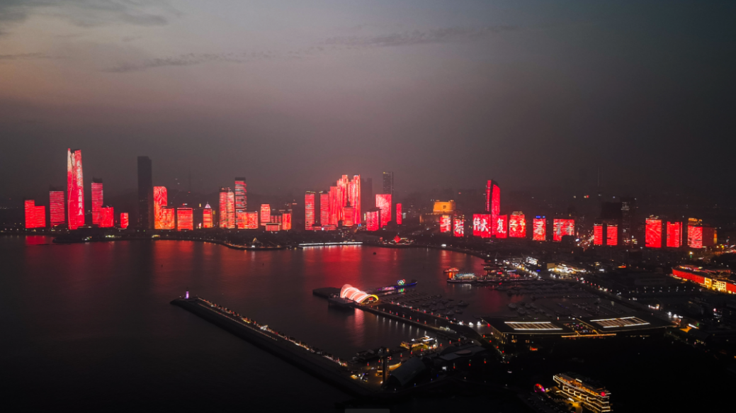 市南區(qū)持續(xù)激發(fā)消費(fèi)潛力,開展“好品聚市南精彩消費(fèi)年”等促消費(fèi)活動(dòng),浮山灣燈光秀推出“大美中國”主題秀及中秋主題秀,與青島風(fēng)光主題等燈光秀編組播放,為市民游客營造濃厚的節(jié)慶氛圍?!按竺乐袊敝黝}燈光秀分四個(gè)篇章,以綠水青山為底色,伴隨紅綢絲帶飄動(dòng),一幕幕展現(xiàn)祖國的發(fā)展成就,傳遞大美中國的家國情懷。