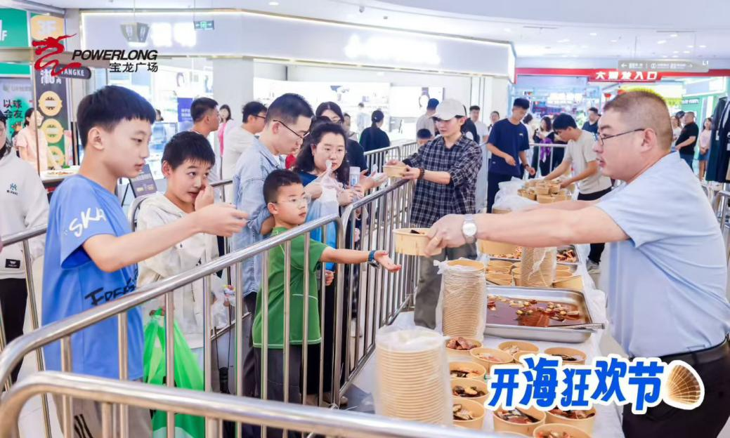 寶龍城市廣場(chǎng)以“開?!睘橹黝},現(xiàn)場(chǎng)設(shè)置霓裳飛天高空雜技秀、開海音樂會(huì)、海鮮大咖任性吃、剝蝦大賽等活動(dòng)。