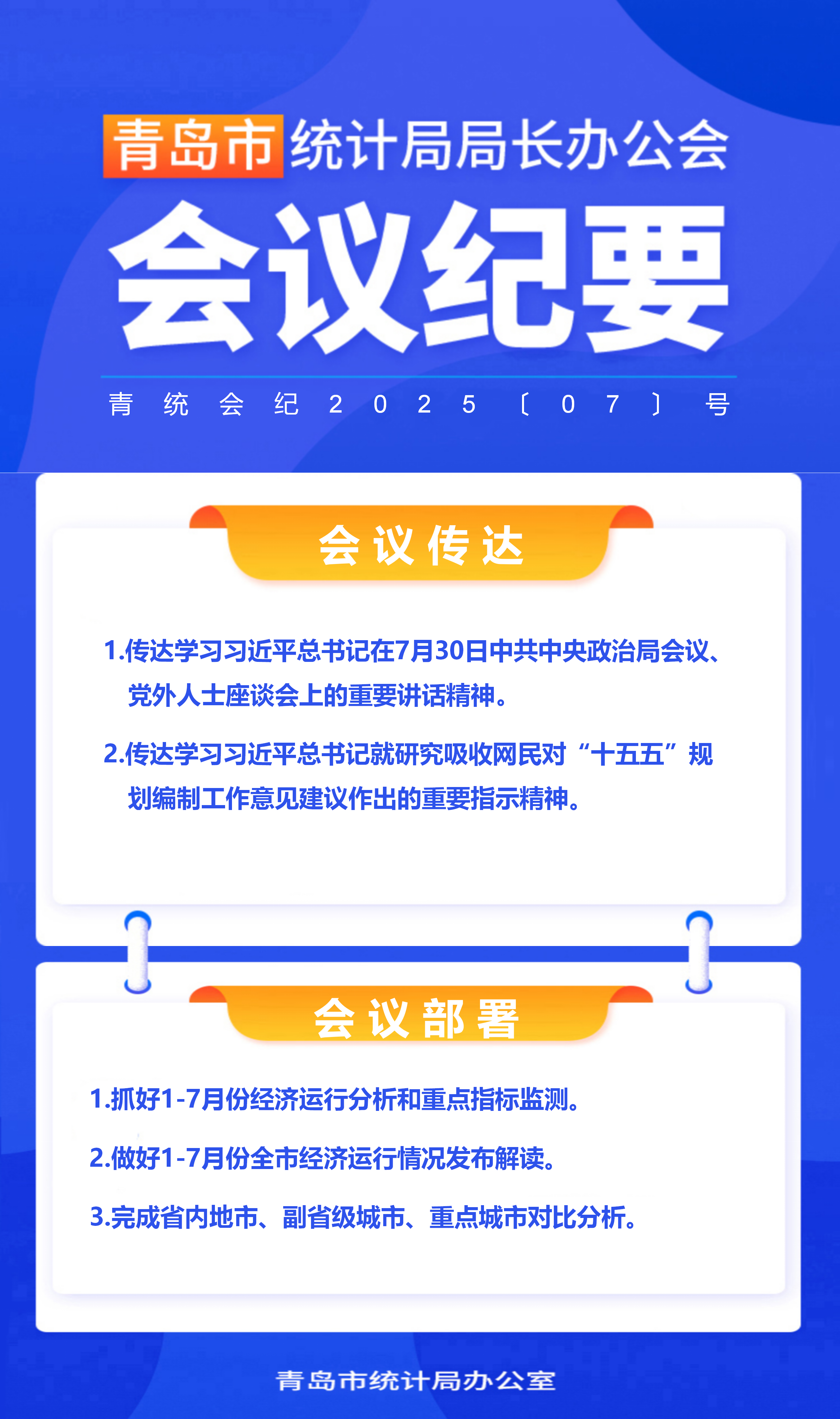 2025年青島市統(tǒng)計(jì)局第7次局長(zhǎng)辦公會(huì)會(huì)議紀(jì)要(圖解)