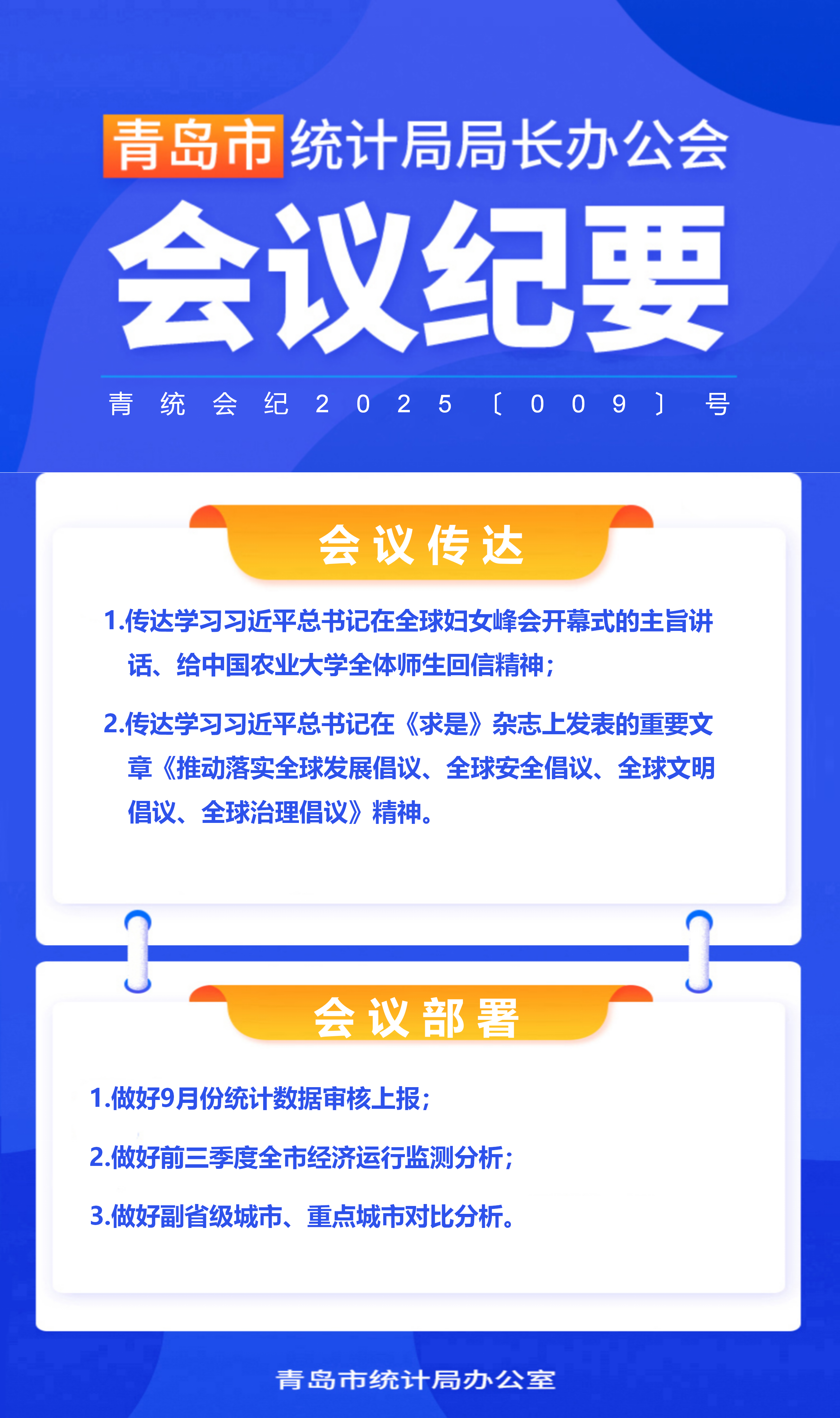 2025年青島市統(tǒng)計(jì)局第9次局長(zhǎng)辦公會(huì)會(huì)議紀(jì)要(圖解)