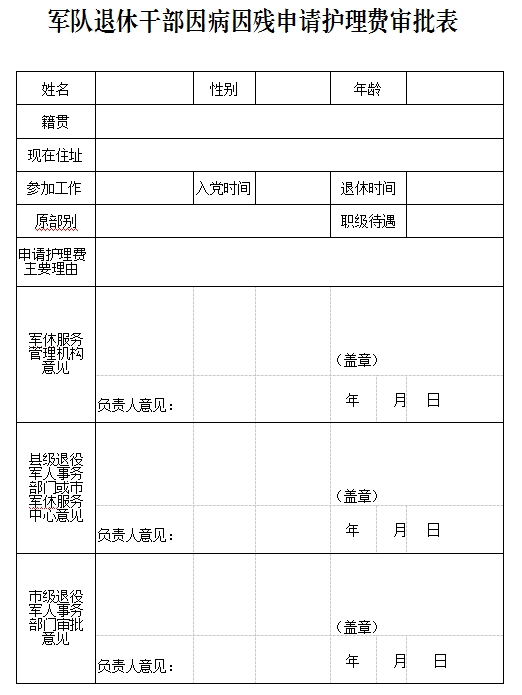 附件:1.《軍隊退休干部因病因殘申請護(hù)理費審批表》