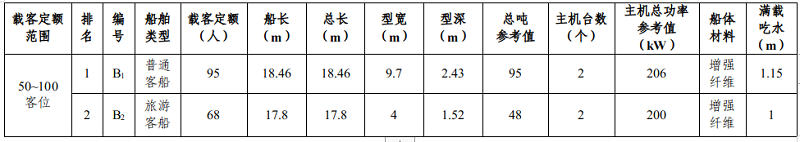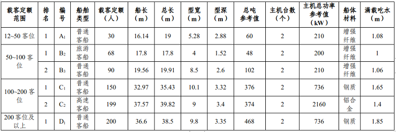 3.7 ?對載客12人以下船舶經(jīng)綜合調(diào)研進(jìn)行標(biāo)準(zhǔn)化船型推薦。