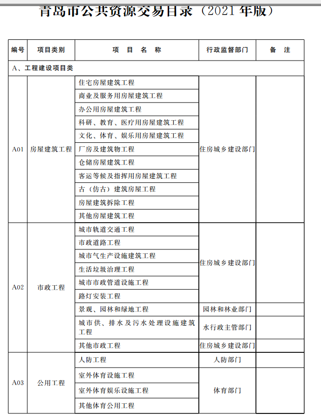 現(xiàn)將《青島市公共資源交易目錄(2021年版)》(以下簡稱《目錄》)印發(fā)給你們,并就有關(guān)事項(xiàng)通知如下: