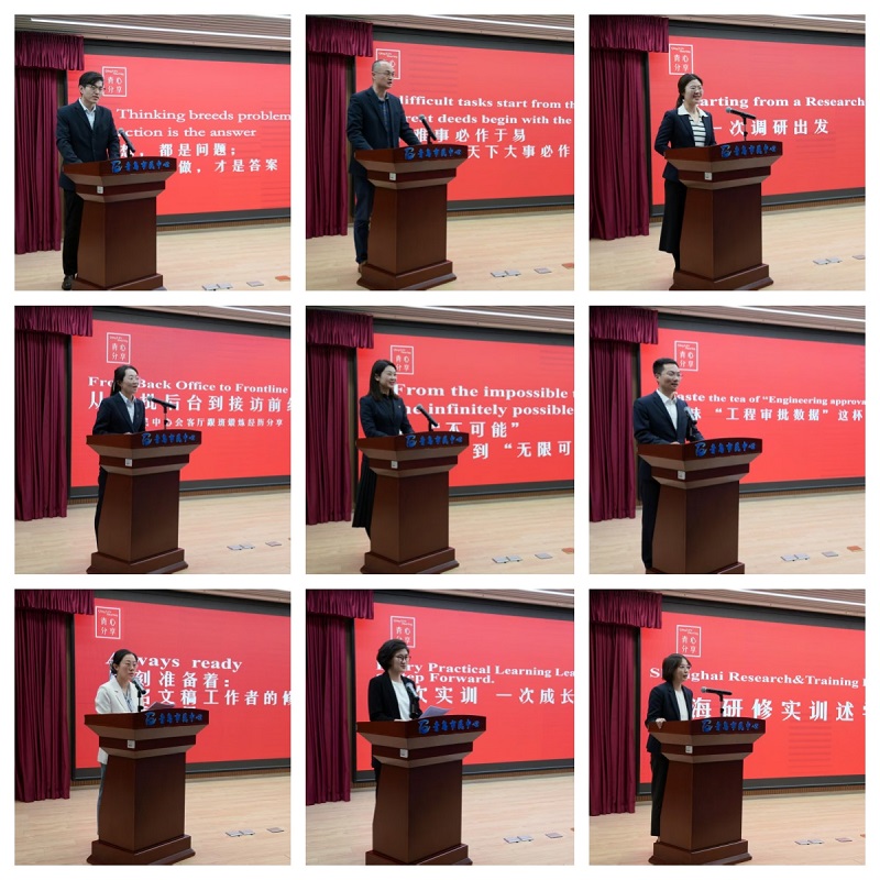 第五期“青心分享”會同步開啟,9名外出調(diào)研培訓、借調(diào)掛職及局內(nèi)工作專班人員從“青瞻·領航者說”“青鋒·外拓者說”“青耘·內(nèi)煉者說”三種視角,分享實踐感悟,結合經(jīng)歷暢談所思所獲。兩名參加市委黨校貫通式培訓干部赴上海、杭州實訓,暢談如何通過政務創(chuàng)新打通科技成果轉化“梗阻”;借調(diào)、掛職鍛煉及外出調(diào)研人員上臺分享跨體系、跨層級的思維碰撞,引發(fā)“他山之石如何攻玉”的熱烈討論;局內(nèi)工作專班成員、市民中心跟班鍛煉代表分享工作心得體會,揭秘“筆桿子”“講解員”“調(diào)解員”等專班成員的修煉之道。