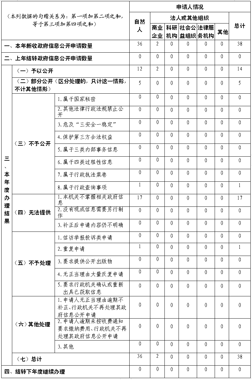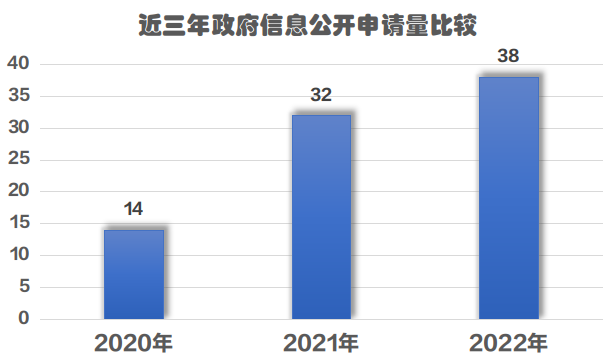 強(qiáng)化政府信息公開服務(wù)理念,加強(qiáng)與申請人的溝通,提高答復(fù)的及時(shí)性和針對性。本年度共接收政府信息公開申請38件,同比上升19%,主要集中在建設(shè)審批等方面。全年辦理結(jié)果情況:按程序公開19件,屬于工商信息查詢1件,屬于其他機(jī)關(guān)公開17件,重復(fù)申請1件。所有依申請公開均按程序依法辦理,未出現(xiàn)行政復(fù)議、行政訴訟。