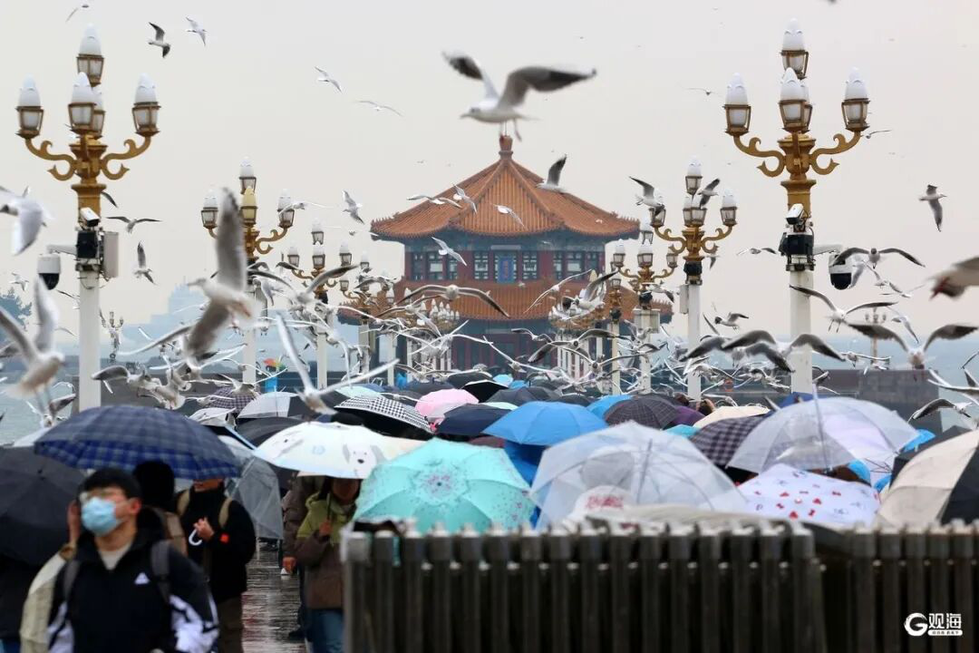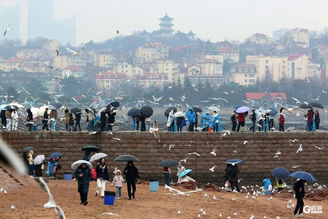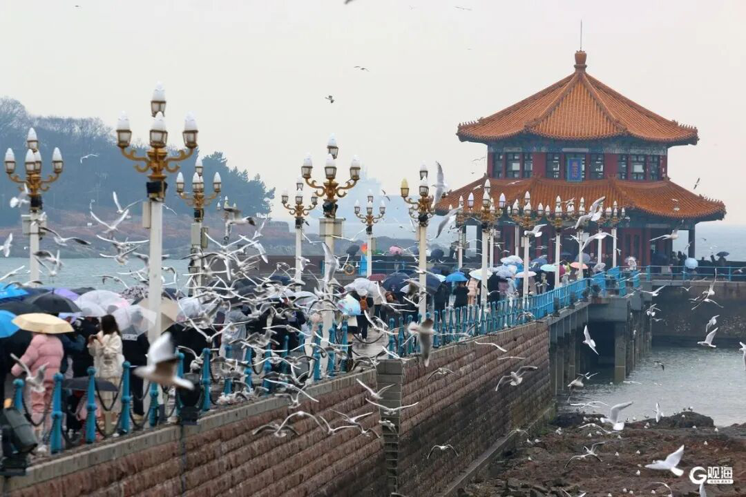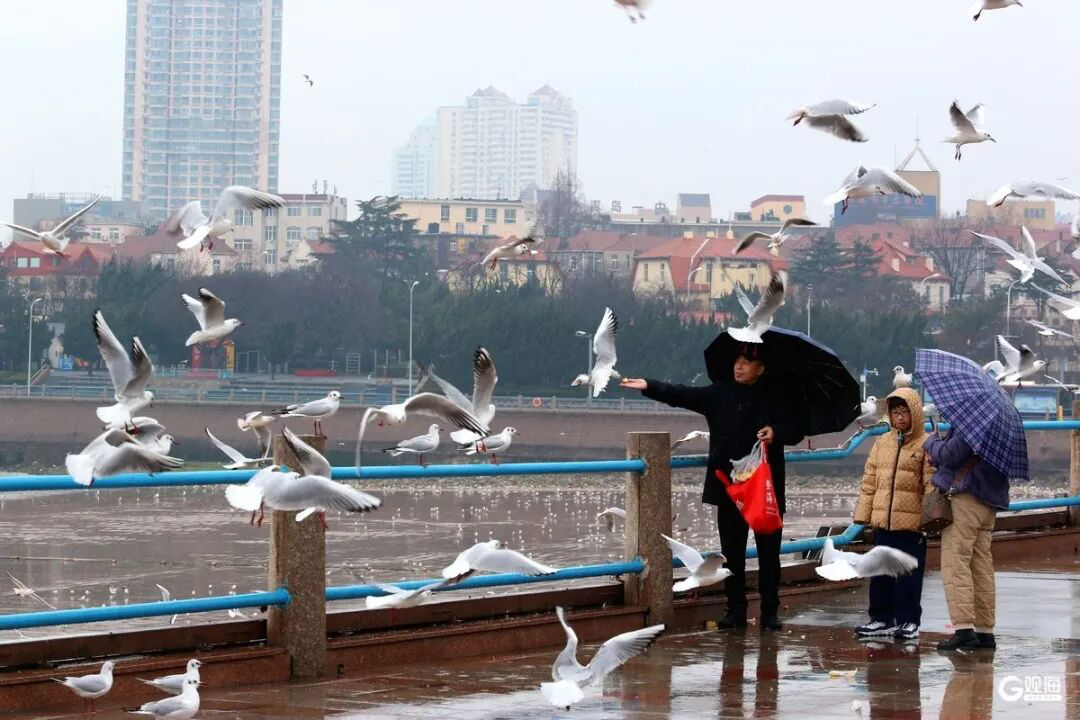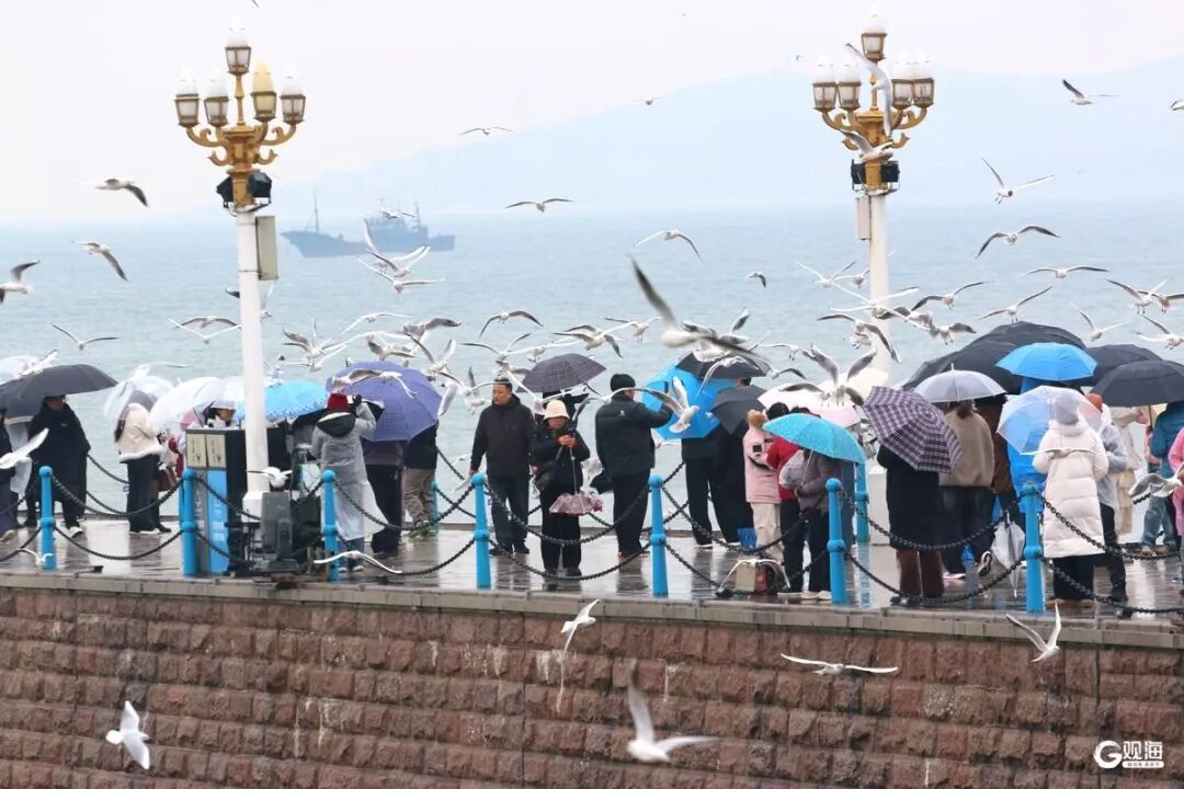 春雨洗塵,碧海生潮,棧橋之上人鷗相依,繪就青島最動(dòng)人的春日?qǐng)D景。這場雨中邂逅,既有山海詩意,更有城市溫情。