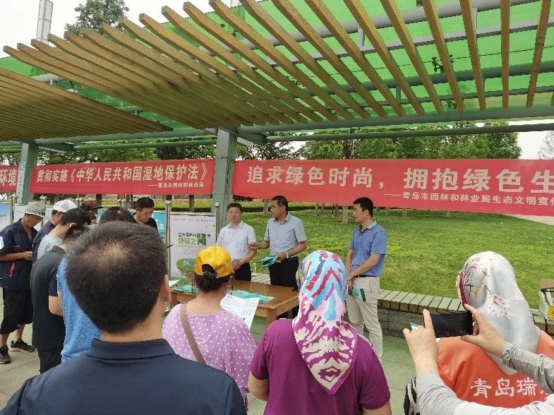活動(dòng)現(xiàn)場(chǎng)通過懸掛橫幅,擺放宣傳展板、現(xiàn)場(chǎng)講解、派發(fā)宣傳冊(cè),宣傳《濕地保護(hù)法》相關(guān)內(nèi)容,共發(fā)放各類宣傳材料500余份。重點(diǎn)講解《濕地保護(hù)法》明文禁止的破壞濕地行為,呼吁廣大群眾愛護(hù)濕地,保護(hù)生態(tài)環(huán)境。青島日?qǐng)?bào)社掌控傳媒對(duì)活動(dòng)進(jìn)行了全程網(wǎng)絡(luò)直播,有效擴(kuò)大了普法宣傳的受眾面。