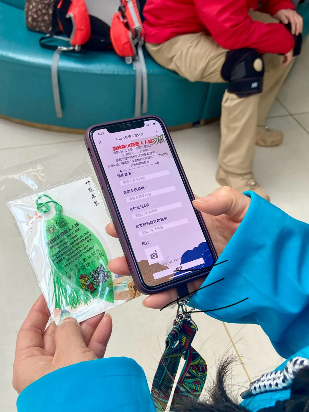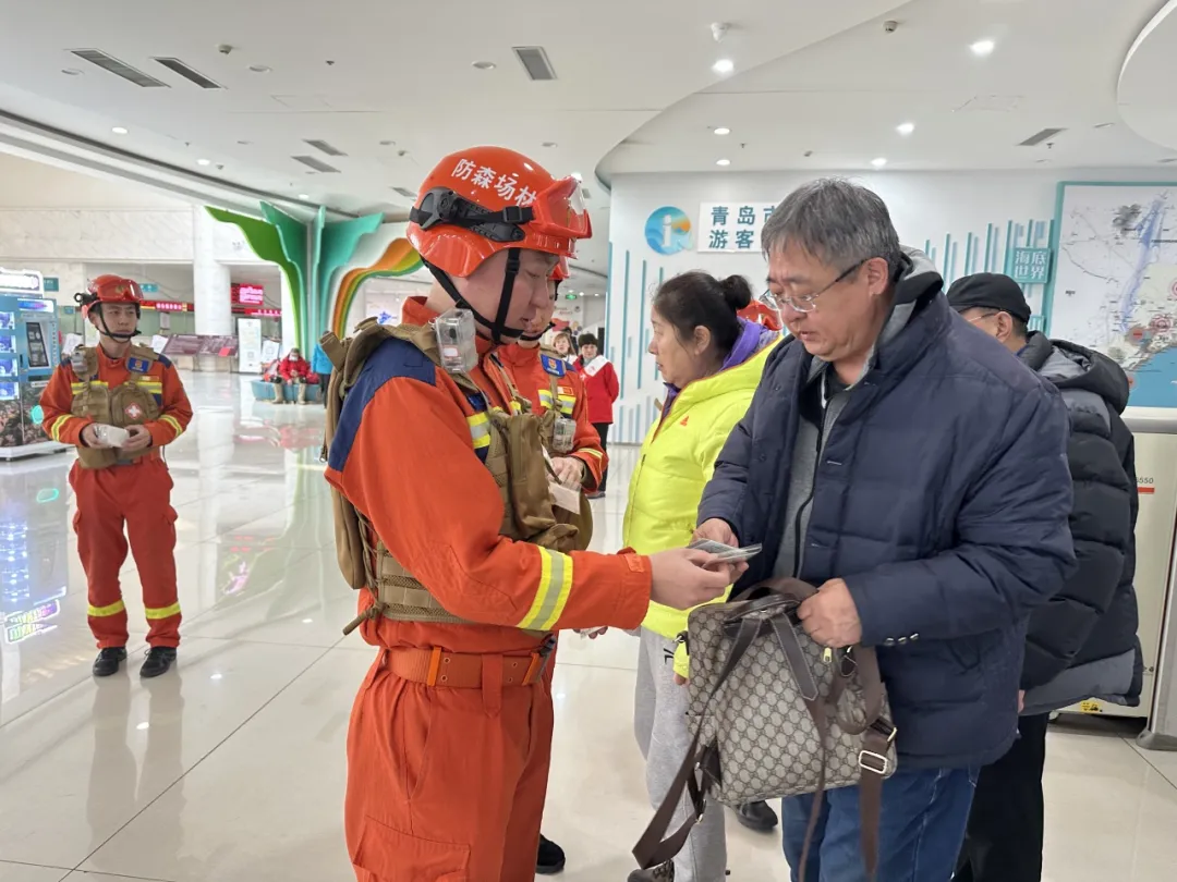 2月21日,在嶗山(大河東)游客服務中心,嶗山林場的森林消防員為游客免費發(fā)放了葉脈書簽,書簽設計成葉脈形狀,配有“森林防火隱患人人拍”活動的介紹文字和二維碼,鼓勵市民對發(fā)現(xiàn)的森林防火隱患進行拍攝,并提出相關建議。無論是林區(qū)內(nèi)隨意丟棄的易燃物品,還是防火設施的損壞等問題,都在拍攝范圍之內(nèi),市民只需將拍攝的隱患照片及具體描述反饋至指定渠道,相關部門就會及時進行核實處理。