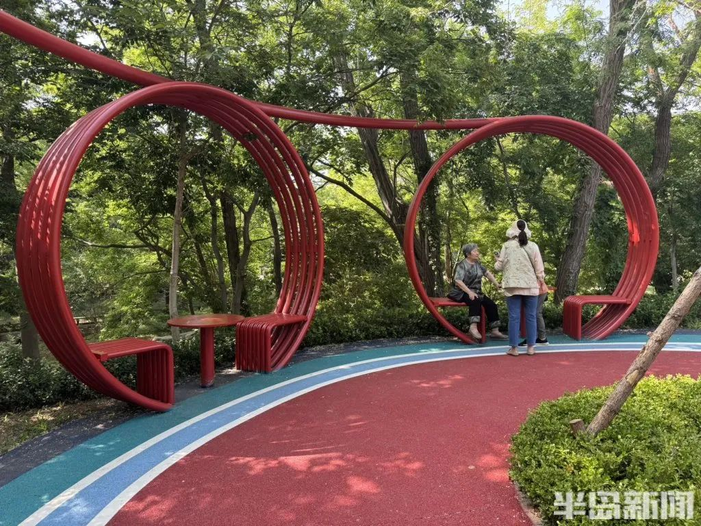 除了本地市民,還有外地游客專門前來打卡。“我們來青島玩三天,今天是第二天。我們想避開人流多的地方,找一處小眾打卡地,剛好從小紅書上搜到這里,感覺比較愜意。”來自遼寧的蘇美竹邊蕩秋千邊說。