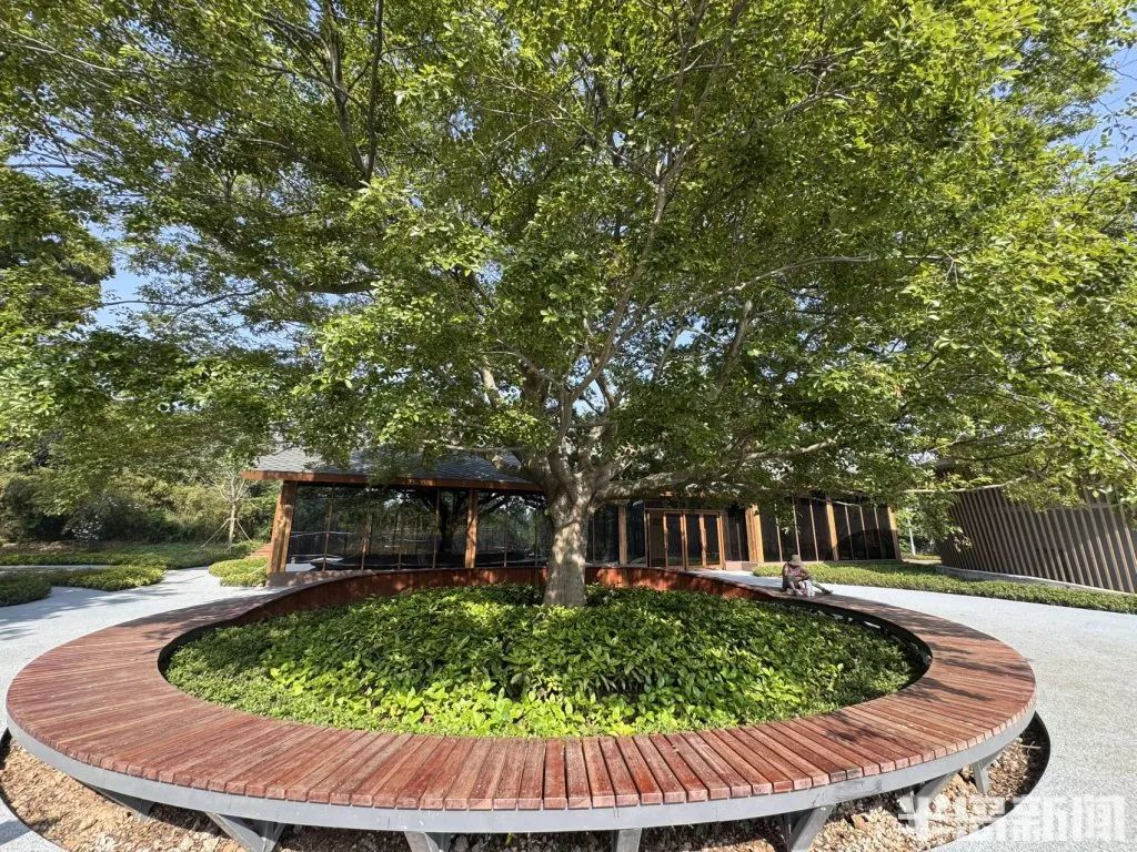 在這處健身區(qū)的上方,一棵樹齡近50年的大樸樹用圍合座椅圍了起來,茂密的樹葉給樹下營造了一處乘涼地。樹后,一處木屋正在建造中,日后將為市民提供更多服務(wù)。