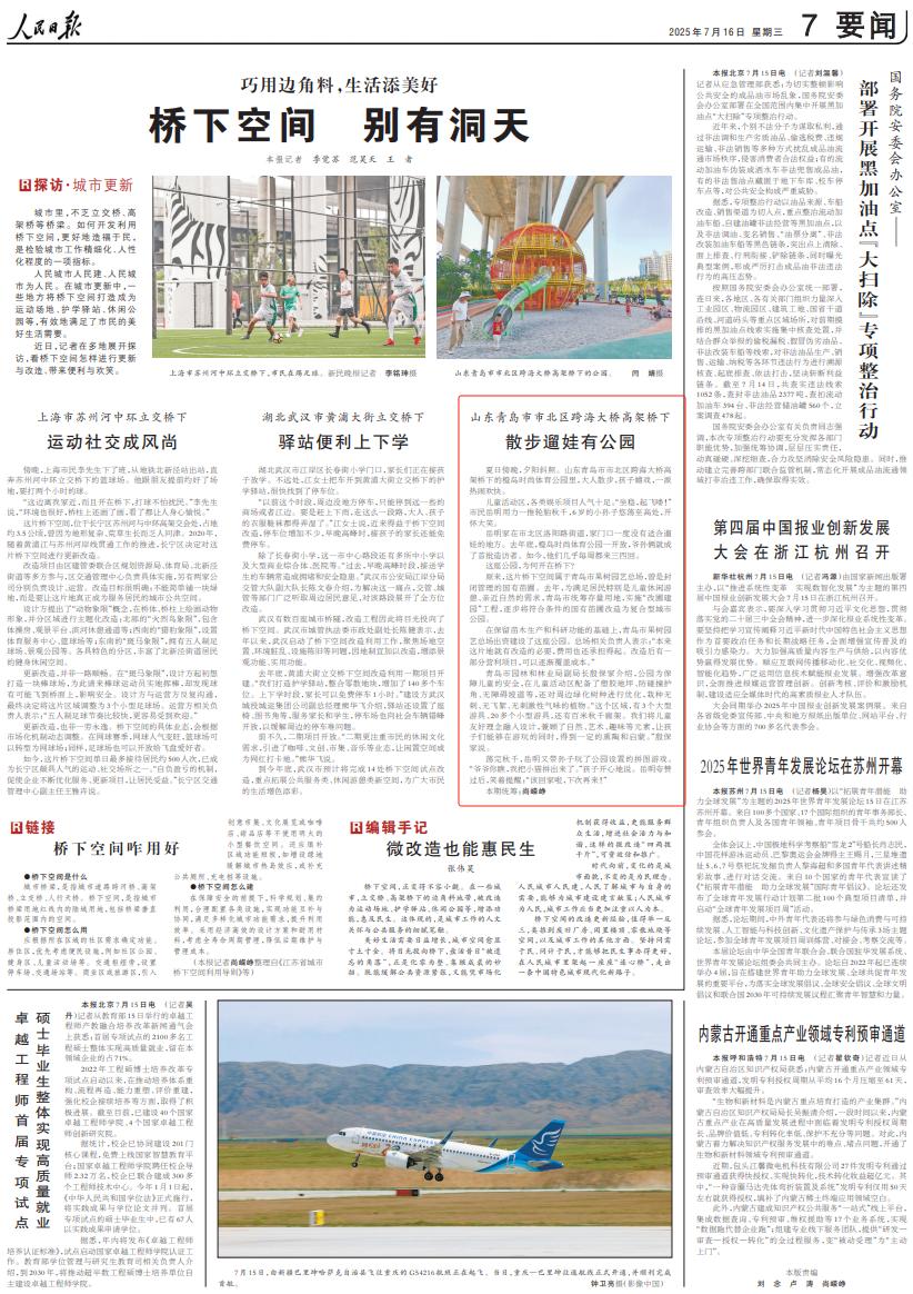 人民城市人民建、人民城市為人民。在城市更新中,一些地方將橋下空間打造成為運(yùn)動場地、護(hù)學(xué)驛站、休閑公園等,有效地滿足了市民的美好生活需要。