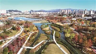 張村河生態(tài)公園內(nèi),綠道與河流相依相伴。 梁 超 攝