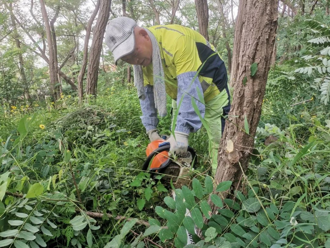 清晨6點(diǎn),當(dāng)大多數(shù)人還在睡夢(mèng)中,養(yǎng)護(hù)工人已開始一天的忙碌:工人們打撈湖面漂浮物,確保水域清澈;團(tuán)隊(duì)穿梭林間除草修剪,呵護(hù)每一寸綠意。盡管高溫讓他們的工作服濕了又干、干了又濕,但他們始終堅(jiān)守崗位,用實(shí)際行動(dòng)詮釋著“愛崗敬業(yè)”的責(zé)任擔(dān)當(dāng)。