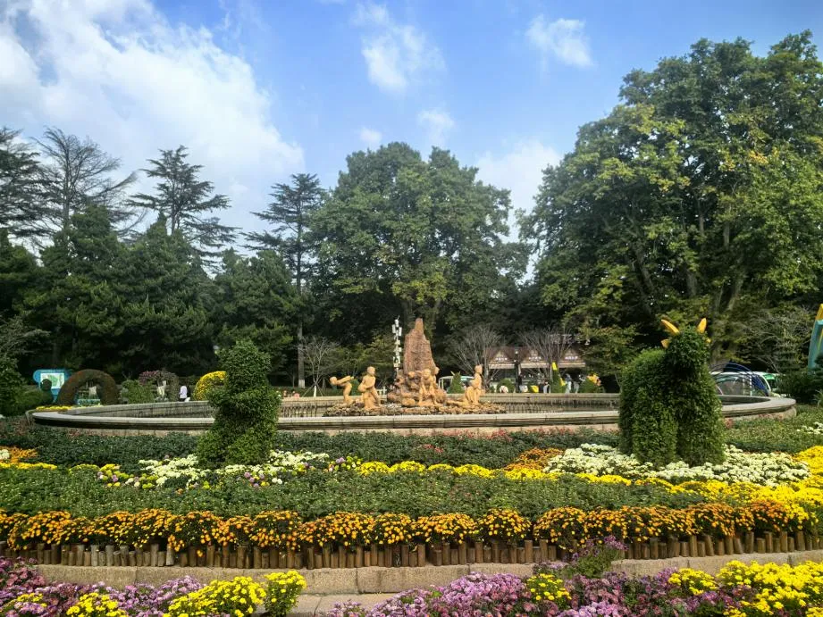 菊展區(qū)域覆蓋中山公園南門至西門環(huán)形路線,并延伸至動物園北門。沿途設(shè)置了“菊韻流霞”“瑞獸呈祥”“菊藝長廊”“時光院落”“菊韻雅集”等20余處主題花景,結(jié)合向日葵、一串紅、芙蓉菊等時令花卉,形成步移景異、處處皆畫的游覽動線。
