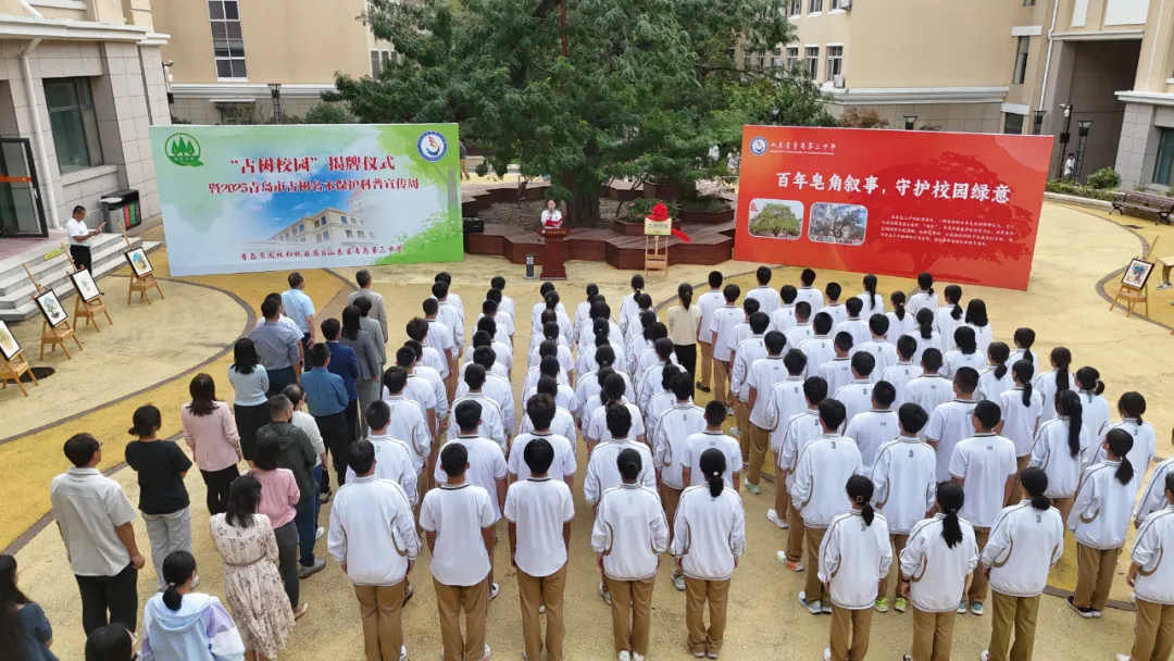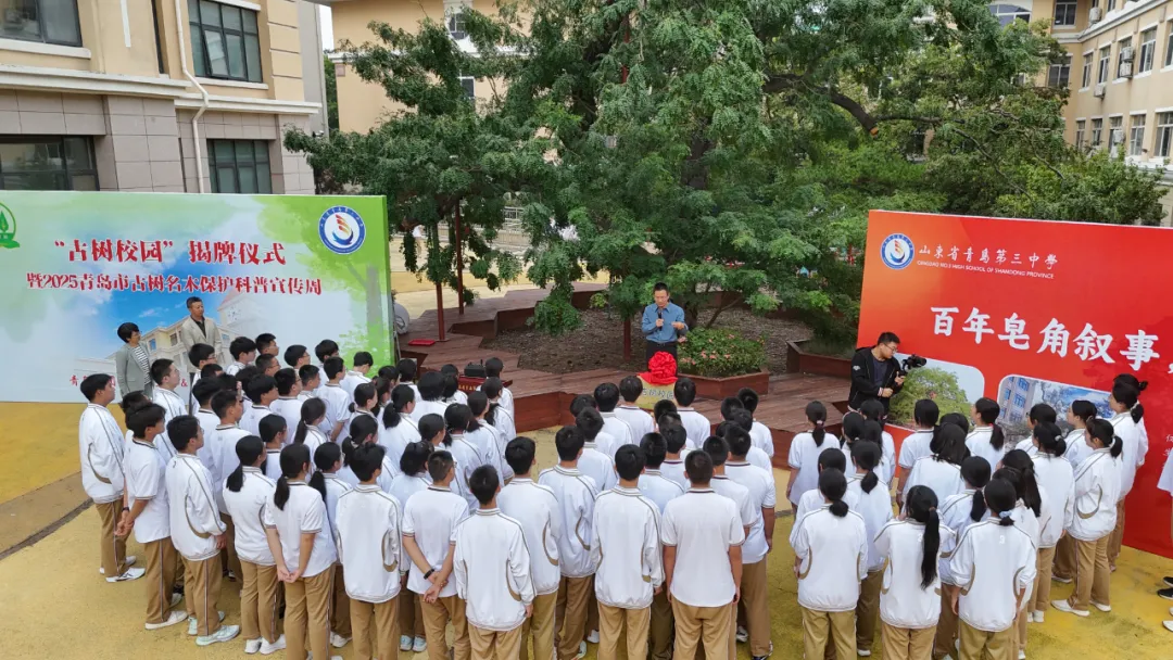 在28日的儀式上,青島市園林和林業(yè)局與青島三中共同為“古樹校園”揭牌,青島三中成為青島市首所獲此殊榮的學(xué)校。