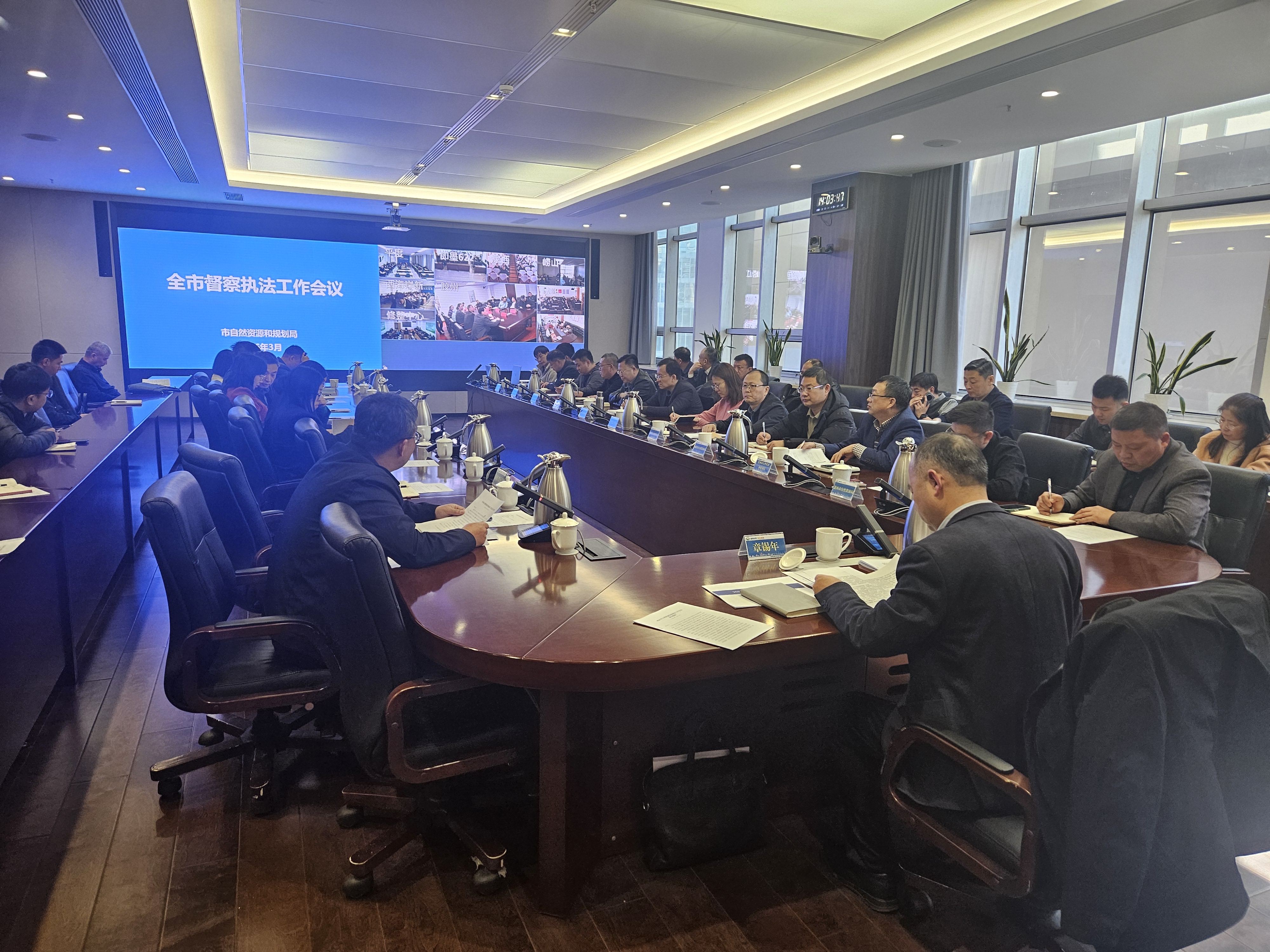 為進(jìn)一步推進(jìn)我市自然資源督察執(zhí)法工作,3月9日下午,市自然資源和規(guī)劃局組織召開(kāi)全市自然資源督察執(zhí)法工作視頻會(huì)議,局分管領(lǐng)導(dǎo)、局機(jī)關(guān)有關(guān)處室、市生態(tài)修復(fù)中心各大隊(duì)負(fù)責(zé)同志,各區(qū)(市)自然資源主管部門(mén)和相關(guān)區(qū)(市)綜合行政執(zhí)法局分管負(fù)責(zé)同志在主會(huì)場(chǎng)參加會(huì)議,其他科室負(fù)責(zé)同志及自然資源所長(zhǎng)在分會(huì)場(chǎng)參加會(huì)議。