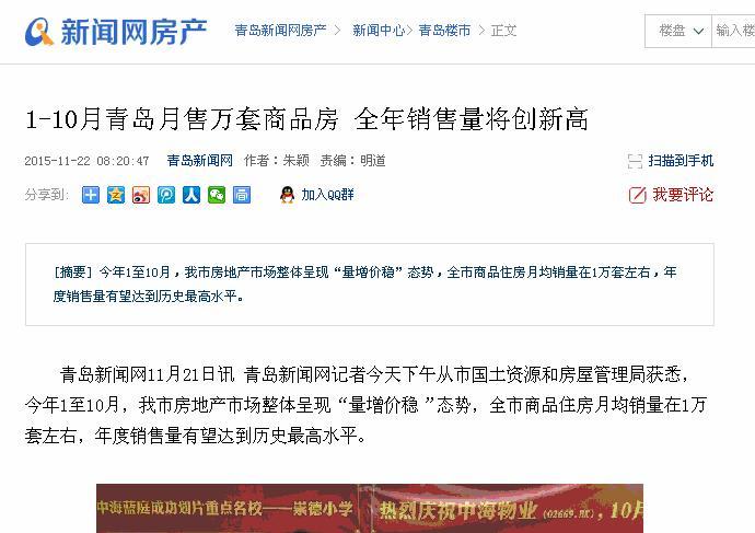 (二)積極回應社會關(guān)切。為拓寬信息公開渠道,我局在已經(jīng)開通官方微博的基礎上,又開通了官方微信。針對社會公眾關(guān)注的熱點問題,充分利用官方微博、微信,及時、方便、快捷地為社會公眾提供政府信息。2015年11月,網(wǎng)絡媒體登載的《青島18萬庫存之急》,引發(fā)關(guān)注,我局第一時間起草了新聞通稿,正面發(fā)聲,向社會公布我市房地產(chǎn)市場平穩(wěn)健康運行的有關(guān)信息,并在青島新聞網(wǎng)進行了發(fā)布,人民網(wǎng)、大眾網(wǎng)、鳳凰網(wǎng)等相關(guān)媒體進行了轉(zhuǎn)載,及時回應社會的關(guān)切,很好的引導輿論。