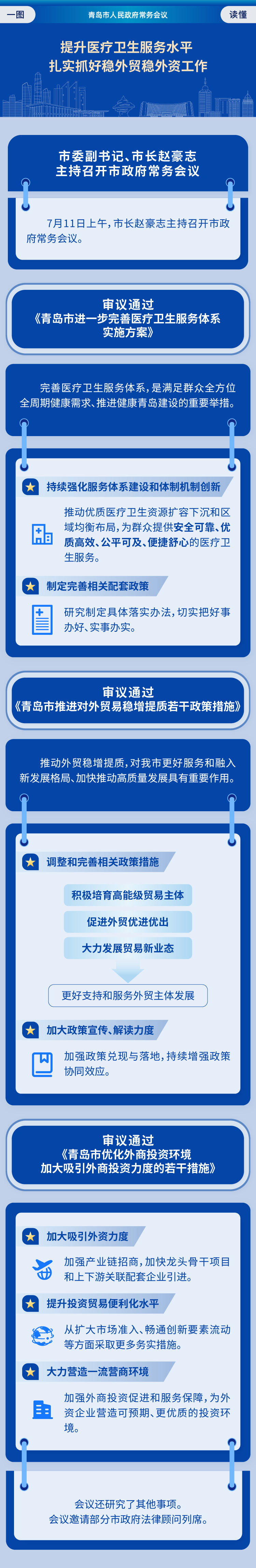 圖文解讀:市政府常務(wù)會(huì)議召開(kāi):提升醫(yī)療衛(wèi)生服務(wù)水平 扎實(shí)抓好穩(wěn)外貿(mào)穩(wěn)外資工作